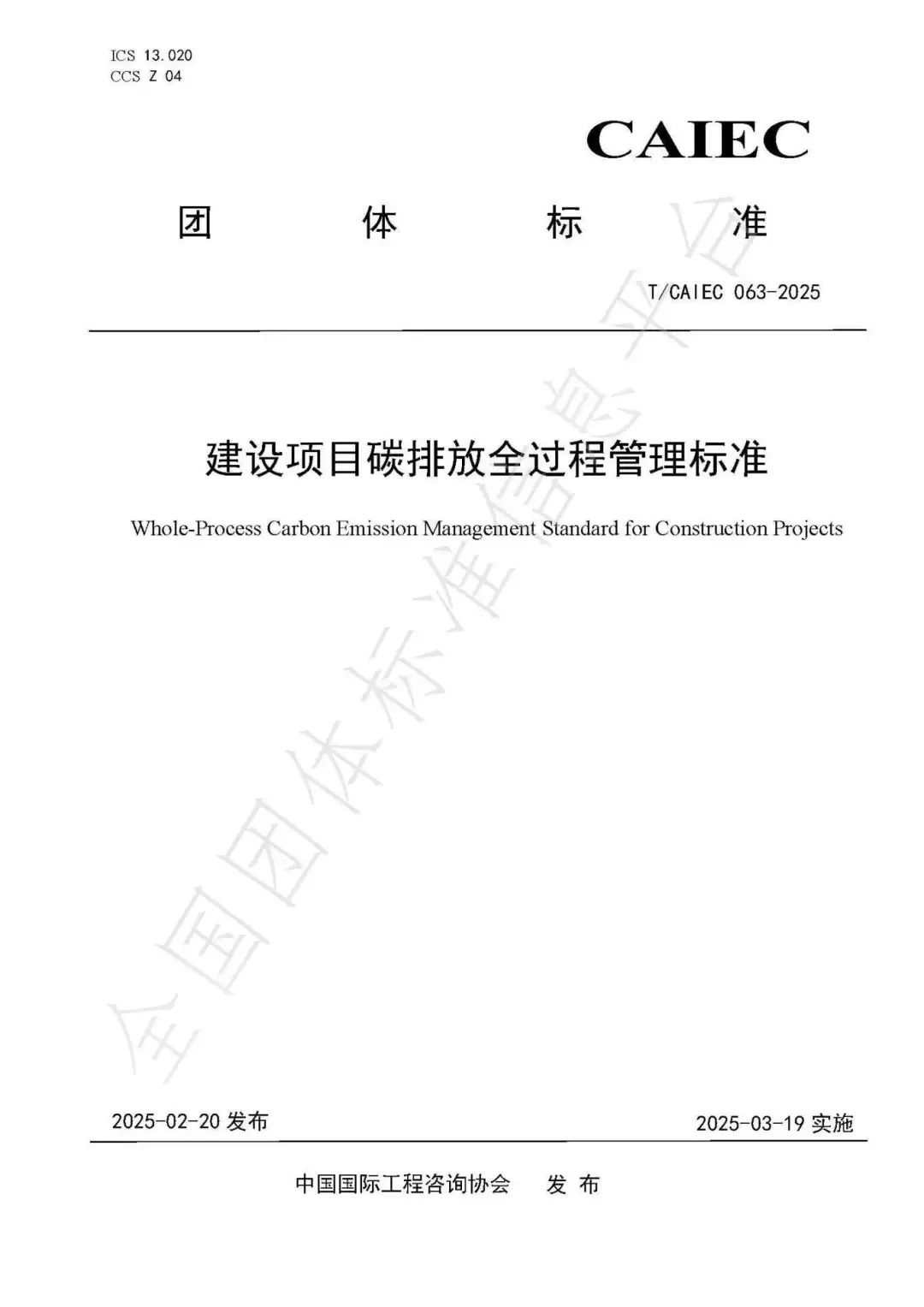 新團(tuán)標(biāo)發(fā)布!《建設(shè)項(xiàng)目碳排放全過(guò)程管理標(biāo)準(zhǔn)》(T/CAIEC 063—2025)