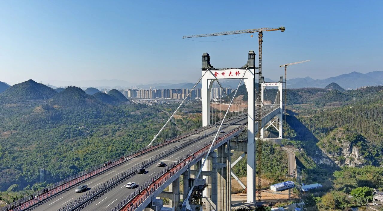 由同濟科技旗下上海同濟市政公路工程咨詢有限公司(簡稱“同濟市政公路”)提供監(jiān)理咨詢服務的黔西南州金州大橋項目,其主體工程已圓滿完成并順利完成試通車。作為目前貴州省跨徑最大的市政懸索橋,這座單跨450米的鋼桁架加勁梁地錨式懸索橋巍然聳立,成為區(qū)域發(fā)展的嶄新地標。